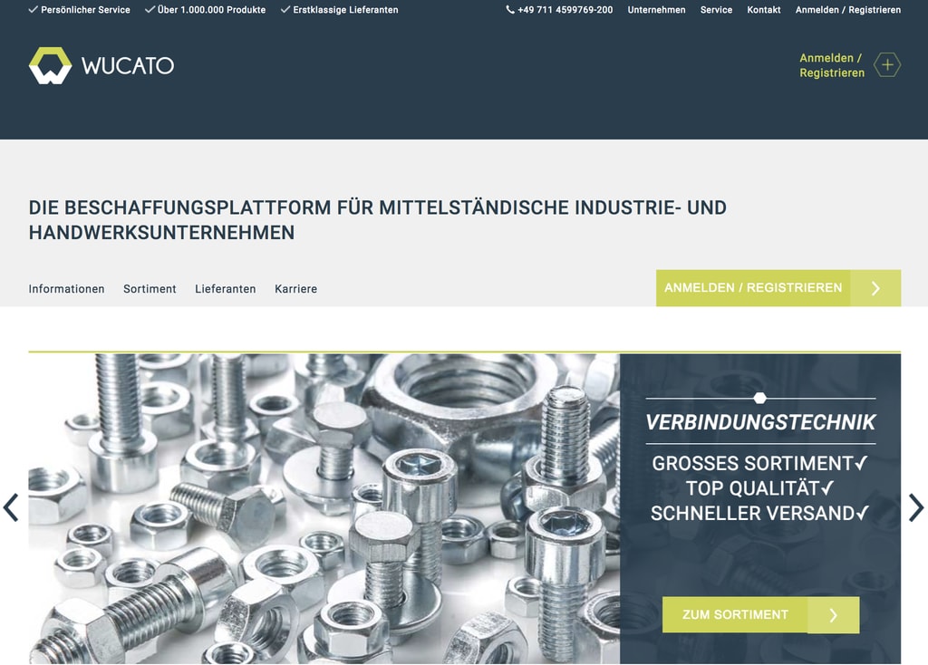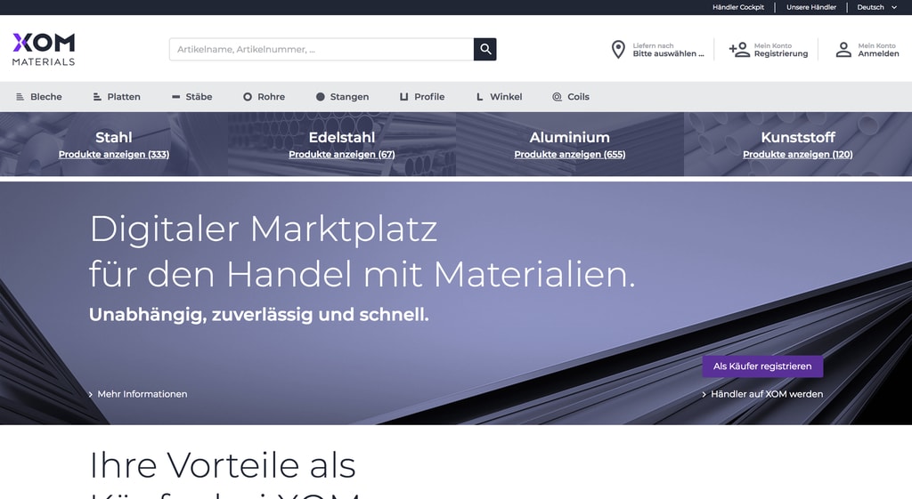 Beispiele für B2B-Plattformen, von rechts nach links: Axoom (www.axoom.de), Protiq (www.protiq.com), WUCATO (www.wucato.de) und XOM Materials (www.xom-materials.com)
